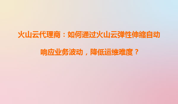 火山云代理商:如何通过火山云弹性伸缩提升企业对云资源的管控能力? 一、企业云资源管理面临的挑战 随着数字化转型加速,企业对云资源的需求呈现动态化和不确定性特征,传统静态资源配置方式暴露出明显不足: ...