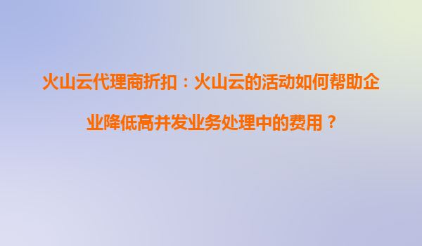 2025-08-16火山云代理商折扣:如何助力企业优化高并发业务成本? 一、高并发场景下的企业成本痛点 在数字化业务快速发展的今天,电商大促、在线教育直播、游戏新版本发布等高并发场景已成为企业常态。传统自建服务器往往...