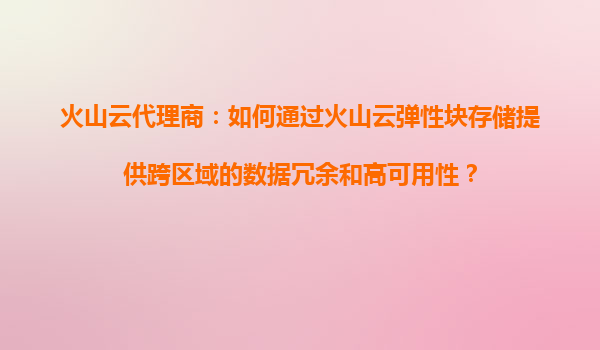 2025-08-16火山云弹性块存储:跨区域数据冗余与高可用性实践指南 火山云弹性块存储的核心优势 火山引擎提供的弹性块存储(EBS)服务是构建企业级云架构的重要基石。基于分布式存储架构,它能够为云服务器提...