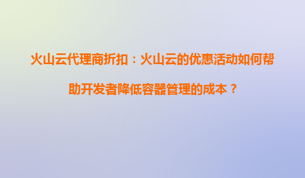 2025-08-16火山云代理商折扣:如何帮助开发者降低容器管理成本? 一、引言:开发者的成本挑战 在云计算与微服务架构快速发展的今天,容器技术(如Docker、Kubernetes)已成为开发...
