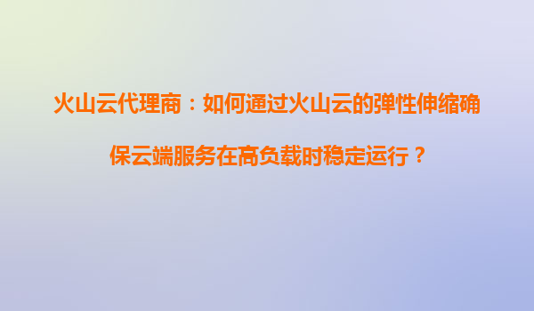 2025-08-16火山云代理商:如何通过火山云的弹性伸缩确保云端服务在高负载时稳定运行? 一、引言:云计算时代的弹性需求 随着数字化转型加速,企业面临业务流量波动日益频繁的挑战。突发流量可能导致服务宕机,而资源...