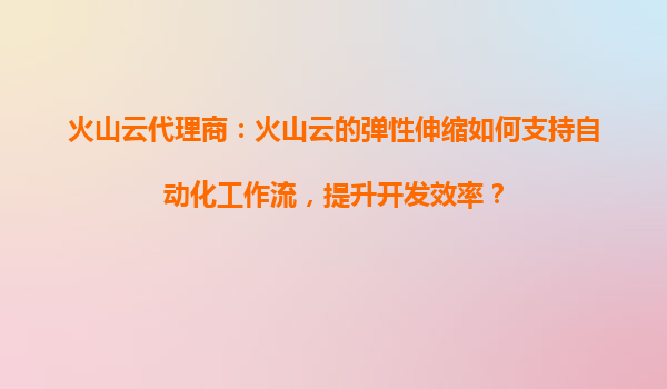 2025-08-16火山云弹性伸缩的自动化工作流支持 在当今快速发展的云计算环境中,自动化工作流已成为提升开发效率的关键因素。火山引擎的弹性伸缩服务通过其智能化的资源调度和自动化管理能力,为开发者提供了强大支持。本文将...