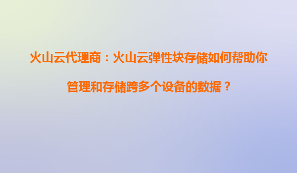 火山云代理商:火山云弹性块存储如何帮助你管理和存储跨多个设备的数据? 引言 在数字化时代,企业和个人面临着海量数据的管理和存储挑战。如何高效、安全地存储和访问分布在多个设备上的数据,成为了...