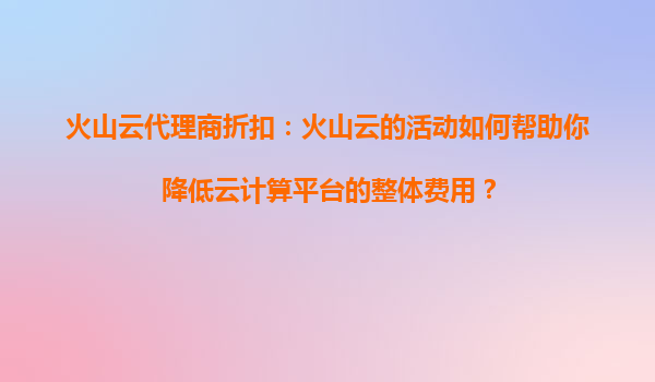 2025-08-16火山云代理商折扣:如何通过火山云的优惠活动优化项目开发的资源利用? 引言 随着云计算技术的快速发展,越来越多的企业和开发者开始依赖云服务来提升项目的开发和运维效率。火山云...