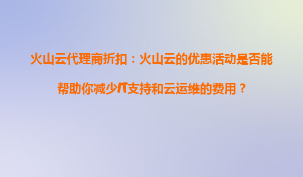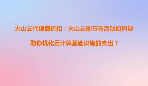 2025-08-14火山云代理商折扣:如何通过火山云的节省活动优化云计算基础设施支出 一、火山云代理商折扣的核心价值 火山云作为领先的云计算服务提供商,通过代理商折扣计划,为企业用户提供更具竞争力的价格和...
