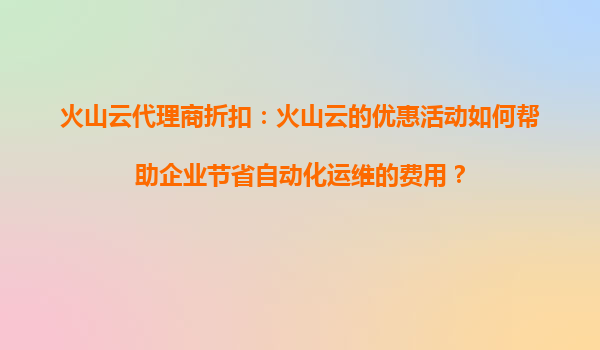 2025-08-14火山云代理商折扣:火山云的优惠活动如何帮助企业节省自动化运维的费用? 一、火山云的核心优势及自动化运维价值 火山云作为字节跳动旗下的云计算服务品牌,凭借其强大的基础设施、弹性伸缩能力和全球...