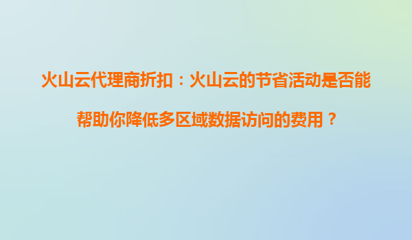 2025-08-14火山云代理商折扣:如何通过节省活动降低多区域数据访问成本? 引言 在当今数字化时代,企业对于跨区域数据访问的需求日益增长,但随之而来的高额成本也让许多企业望而却步。火山云作为领先的云服务提供商...