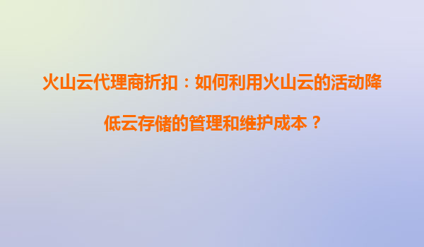 2025-08-14火山云代理商折扣:如何利用火山云的活动降低云存储的管理和维护成本? 一、火山云的核心优势解析 火山云作为国内领先的云计算服务提供商,凭借其强大的技术能力和丰富的资源储备,为企业用户提供...