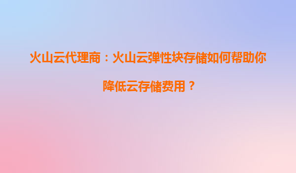2025-08-14火山云代理商:火山云弹性块存储如何帮助你降低云存储费用? 一、云存储成本挑战与企业痛点 在数字化转型大潮下,企业数据量呈现爆发式增长,传统存储方案面临三大核心挑战: 存储资源浪费:固定容量...
