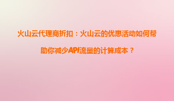 2025-08-14火山云代理商折扣:火山云的优惠活动如何帮助你减少API流量的计算成本? 1.火山云的核心优势与API流量计算的痛点 火山云作为国内领先的云计算服务提供商,凭借其高性能计算资源、弹性扩缩容能力和全球化节...