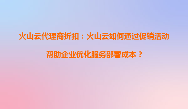 2025-08-14火山云代理商折扣:火山云如何通过促销活动帮助企业优化服务部署成本? 一、火山云的核心优势 火山云作为领先的云计算服务提供商,凭借其强大的基础设施和技术能力,为企业提供了高效、稳定且灵活的云服务...