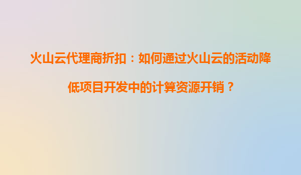 火山云代理商折扣:如何通过火山云的活动降低项目开发中的计算资源开销? 引言:云计算资源优化的重要性 在当今数字化时代,云计算已成为企业技术架构的核心组成部分。然而,随着业务的扩展,计算资源的需...