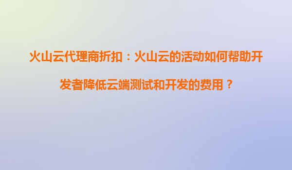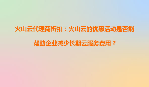 2025-08-13火山云代理商折扣:火山云的优惠活动是否能帮助企业减少长期云服务费用? 引言 在当今数字化时代,企业对于云服务的需求日益增长,而成本控制成为许多企业关注的焦点。火山云(VolcEngine)作...