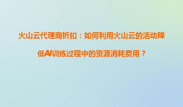 2025-08-13火山云代理商折扣:如何利用火山云的活动降低AI训练过程中的资源消耗费用? 引言:AI训练成本与火山云的价值 在人工智能(AI)模型的训练过程中,计算资源的消耗是不可避...