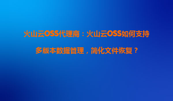 2025-08-13火山云OSS代理商:火山云OSS如何支持多版本数据管理,简化文件恢复? 在当今数字化时代,数据成为企业最宝贵的资产之一。如何高效管理数据,确保数据安全,并在需要时快速恢复文件,成为企业IT管理的重要课题...