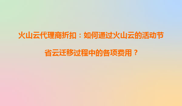 2025-08-13如何通过火山云代理商折扣活动优化云迁移成本? 火山云代理商折扣活动的核心价值 火山云通过代理商体系为企业提供阶梯式折扣政策,新用户首单最高可享5折优惠,长期合作客户还可获得定制化资源包。这...