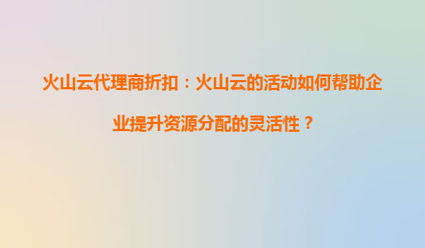 火山云代理商折扣:火山云活动如何帮助企业提升资源分配的灵活性? 一、火山云的核心优势与资源分配灵活性 火山云作为领先的云计算服务提供商,其核心优势在于...