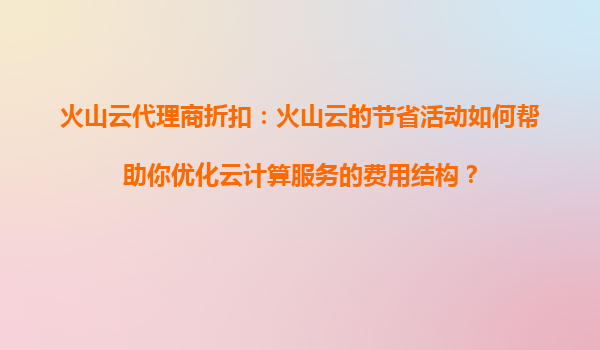 2025-08-13火山云代理商折扣:火山云的节省活动如何帮助你优化云计算服务的费用结构? 引言 在当今数字化时代,云计算已成为企业IT基础设施的核心组成部分。对于企业而言,如何高效利用云计算资源并降低成本是至关重...