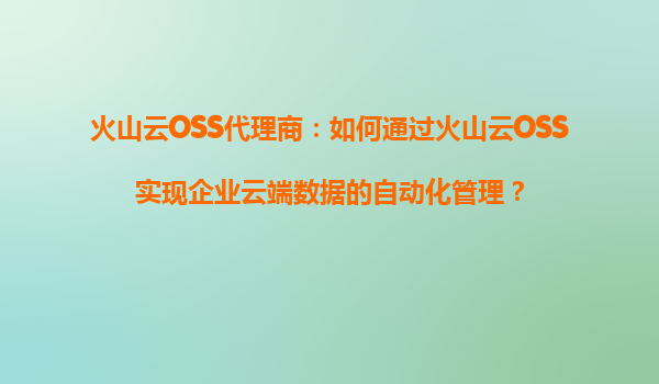 2025-08-13火山云OSS代理商:如何通过火山云OSS实现企业云端数据的自动化管理? 一、火山云OSS的核心优势与自动化管理价值 火山引擎对象存储服务(OSS)作为企业级云存储解决方案,具备高可用性、弹性扩展和成本优化...