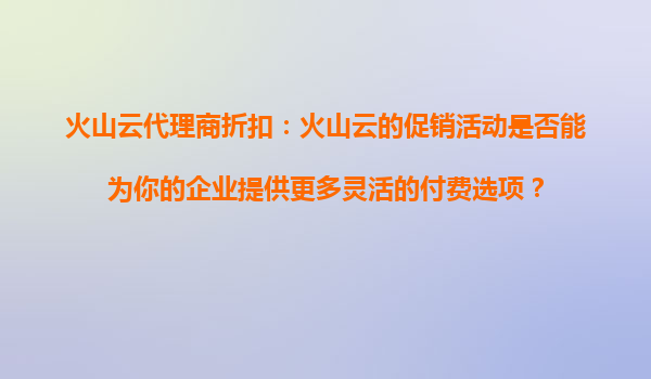 2025-08-13火山云代理商折扣:火山云的促销活动是否能为你的企业提供更多灵活的付费选项? 引言:云计算时代的企业需求 在数字化转型的浪潮中,企业对云计算服务的需求持...