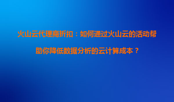 2025-08-13火山云代理商折扣:如何通过火山云的活动帮助你降低数据分析的云计算成本? 在当今数据驱动的商业环境中,数据分析已成为企业决策和业务增长的核心工具。然而,随着数据量的爆炸式增长,云计算成本的管理也变得...
