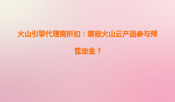 2025-08-10火山引擎代理商折扣:哪些火山云产品参与预售定金? 一、火山云核心产品与预售定金活动概览 火山引擎作为字节跳动旗下的云计算服务品牌,近年来通过灵活的代理商合作模...