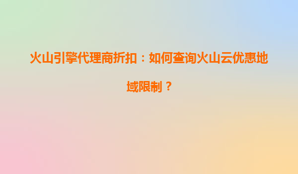 火山引擎代理商折扣:如何查询火山云优惠地域限制? 一、火山云的核心优势解析 火山云作为字节跳动旗下企业级技术服务品牌,依托全球领先的云计算基础设施和算法能力,为企业客户提供三大核心优势: 全...