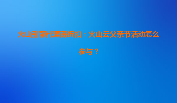 火山引擎代理商折扣:火山云父亲节活动参与指南与优势解析 一、火山云父亲节活动简介 火山引擎作为字节跳动旗下的云计算服务品牌,在父亲节期间推出特别优惠活动,通过代理商渠道为用户...