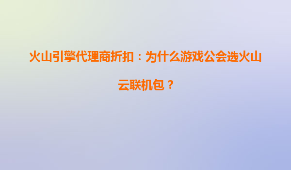 2025-08-09火山云联机包:游戏公会的首选解决方案 高性能服务器保障游戏流畅体验 对于游戏公会而言,服务器的稳定性和性能至关重要。火山云联机包依托火山引擎强大的基础设施,提供高性能的服务器资源,确保游戏运行...