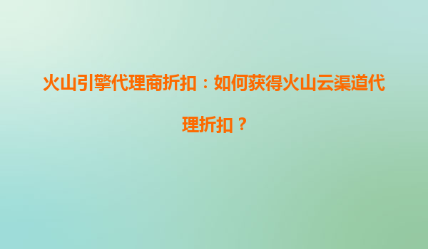 2025-08-08火山引擎代理商折扣:如何获得火山云渠道代理折扣? 一、火山云的核心优势 火山云作为字节跳动旗下的云计算品牌,依托字节跳动强大的技术积累和全球化资源,为企业提供高性能、高可...