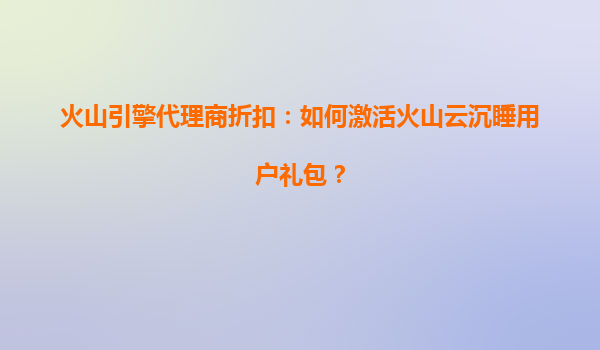 2025-08-07火山引擎代理商折扣:如何激活火山云沉睡用户礼包 火山云的核心优势与价值 火山云作为火山引擎旗下的云计算服务品牌,凭借其强大的技术实力和丰富的行业经验,为企业用户提供了高效、稳定且安全的云服务解...