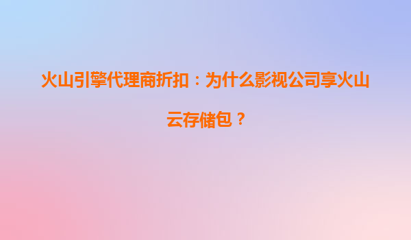 2025-08-07火山引擎代理商折扣:为什么影视公司青睐火山云存储包? 一、火山引擎代理商折扣的吸引力 火山引擎作为字节跳动旗下的云计算服务品牌,近年来在影视行业迅速崛起。其代理商折扣政策为影视公司提供...