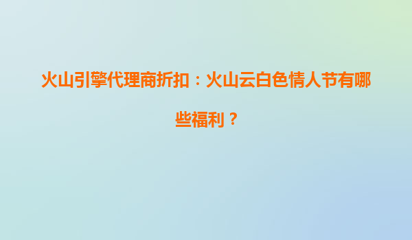 2025-08-07火山引擎代理商折扣:火山云白色情人节有哪些福利? 一、火山云的核心优势 火山云作为字节跳动旗下的云计算服务品牌,依托字节跳动的技术积累和全球资源,为企业提供高效、稳定、安全的云计算解决...