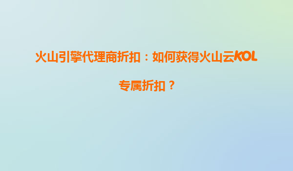 火山云KOL专属折扣获取指南:享受高效云服务的优惠之道 火山云的核心优势 作为字节跳动旗下的云计算品牌,火山云凭借其强大的技术底蕴和丰富的实战经验,为企业用户提供稳定、安全且高效的云服务解决方案。...