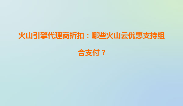 2025-08-06火山引擎代理商折扣:哪些火山云优惠支持组合支付? 在数字化转型的浪潮中,云计算服务已成为企业提升效率、降低成本的重要工具。火山引擎作为字节跳动旗下的云计算品牌,凭借其强大的技术实力和丰富的产品矩阵...
