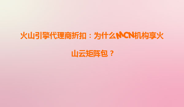 2025-08-06火山引擎代理商折扣:MCN机构为何青睐火山云矩阵包? 一、火山云矩阵包的核心价值 火山云矩阵包是火山引擎面向MCN机构推出的定制化解决方案,通过整合计算、存储、CDN等基础资源与短视频生态工具,帮助机构...