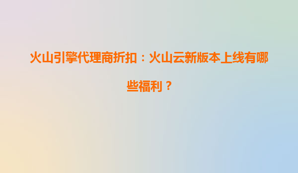 2025-08-05火山引擎代理商折扣:火山云新版本上线有哪些福利? 一、火山云的核心优势与市场竞争力 火山云作为字节跳动旗下火山引擎推出的云计算服务品牌,凭借其技术积累和生态资源,在性能、成本、服务等方面具备显...