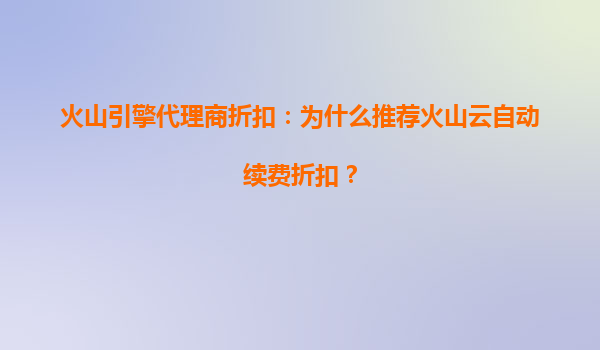 2025-08-05火山引擎代理商折扣:为什么推荐火山云自动续费折扣? 一、火山云的核心优势 火山云作为字节跳动旗下的云计算品牌,依托全球领先的技术架构和基础设施,为企业提供高性...