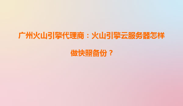 2025-08-04广州火山引擎代理商:火山引擎云服务器怎样做快照备份? 一、火山引擎云服务器的核心优势 火山引擎作为字节跳动旗下的云计算服务平台,凭借其强大的技术积累和全球化基础设施,为用户提供高性能、高可靠的...