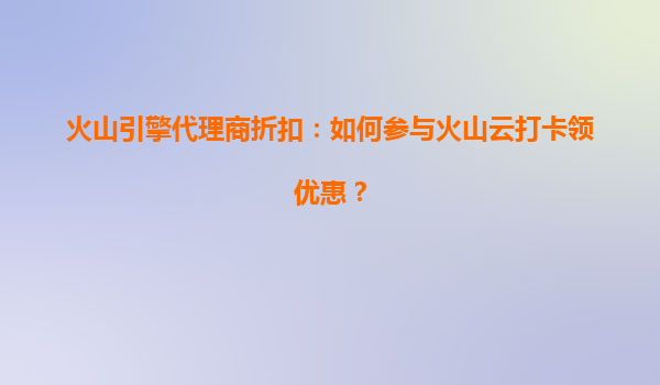2025-08-04火山引擎代理商折扣:如何参与火山云打卡领优惠? 一、火山云的核心优势 火山引擎作为字节跳动旗下的云计算服务品牌,凭借以下优势成为企业数字化转型的优选: 高性能计算能力:依托字节跳动海量业务的...