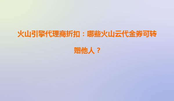 2025-08-04火山引擎代理商折扣:哪些火山云代金券可转赠他人? 一、火山云的核心优势 火山云作为字节跳动旗下的云计算服务品牌,凭借强大的技术底座和丰富的行业经验,为...
