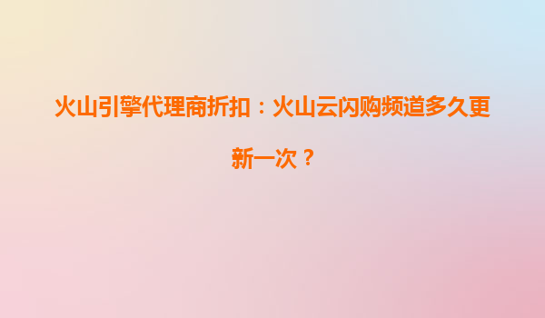 2025-08-04火山引擎代理商折扣解析:火山云闪购频道更新频率与核心优势 一、火山云闪购频道更新频率 火山云闪购频道作为火山引擎推出的限时优惠活动平台,其更新频率通常...