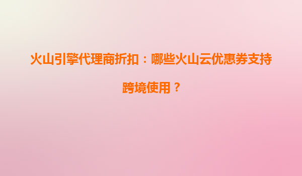 2025-08-03火山引擎代理商折扣解析:哪些火山云优惠券支持跨境使用? 一、火山云的核心优势 火山云作为字节跳动旗下的云计算服务品牌,凭借其全球化的基础设施布局和强大...