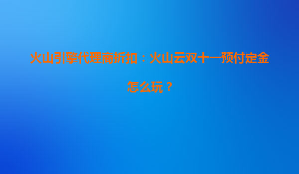 2025-08-03火山引擎代理商折扣:火山云双十一预付定金玩法全解析 一、火山云双十一预付定金活动规则 火山引擎在双十一期间推出预付定金优惠活动,用户通过指定代理商渠道预付定金可享受多重福利: ...