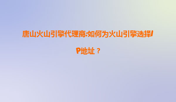 2025-08-02唐山火山引擎代理商:如何为火山引擎选择IP地址? 一、火山引擎的核心优势 作为字节跳动旗下的企业级技术服务品牌,火山引擎凭借以下优势成为企业数字化转型的首选: 全球化基础设施:...