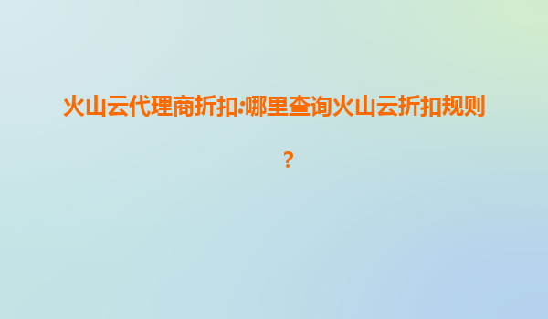2025-08-02火山云代理商折扣政策全解析 一、如何查询火山云最新折扣规则? 作为国内领先的云计算服务商,火山云为合作伙伴提供了灵活的代理商折扣机制。用户可通过以下三种途径获取精准的折扣信息:首先登录...
