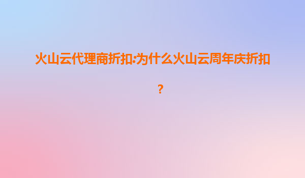 2025-08-01火山云代理商折扣:为什么火山云周年庆折扣? 一、火山云周年庆折扣的背景与意义 火山云作为国内领先的云计算服务提供商,每年都会通过周年庆活动回馈用户和合作伙伴。周年庆折扣不仅是火山云对客...