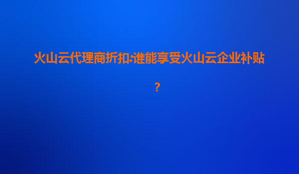 2025-07-30火山云代理商折扣:谁能享受火山云企业补贴? 一、火山云的核心优势 火山云作为字节跳动旗下的云计算服务品牌,凭借其强大的技术实力和丰富的行业经验,为企业用户提供了高效、稳定且安全的云计算解决方案...