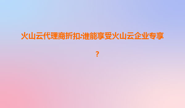 2025-07-26火山云代理商折扣政策解读:新套餐为何更超值? 随着云计算市场竞争加剧,火山云通过优化代理商折扣政策推出全新套餐组合。本文将从性能、成本和服务三个维度解析新套餐的核心优势,帮助用户理解升级背后的深层价值...