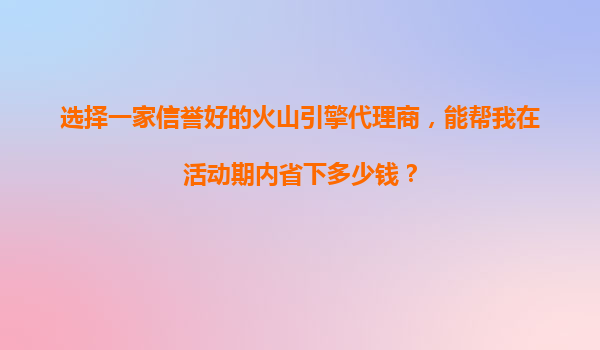 2025-11-05为什么选择火山引擎代理商能帮您在活动期省下大笔费用? 在企业数字化转型的浪潮中,云计算服务已成为不可或缺的基础设施。火山引擎作为字节跳动旗下的云服务平台,凭借其强大的技术实力和丰富的生态资源,为企...